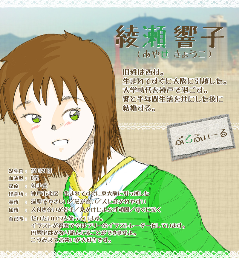 「神戸散歩」の物語を織り成す登場人物たちのプロフィールなどを簡単に紹介します。