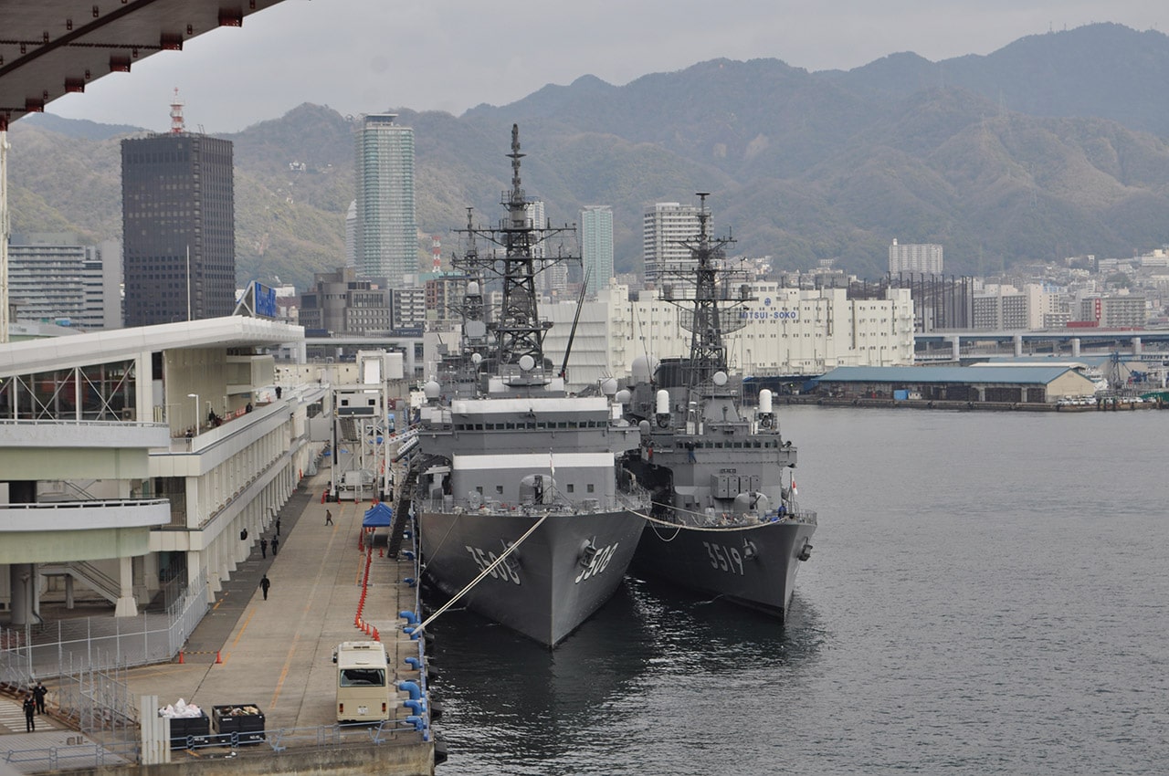 ポートターミナルに来る船は客船とは限らない。この3隻を見たときは心が震えた。おっさんはいくつになっても少年の心を忘れない。