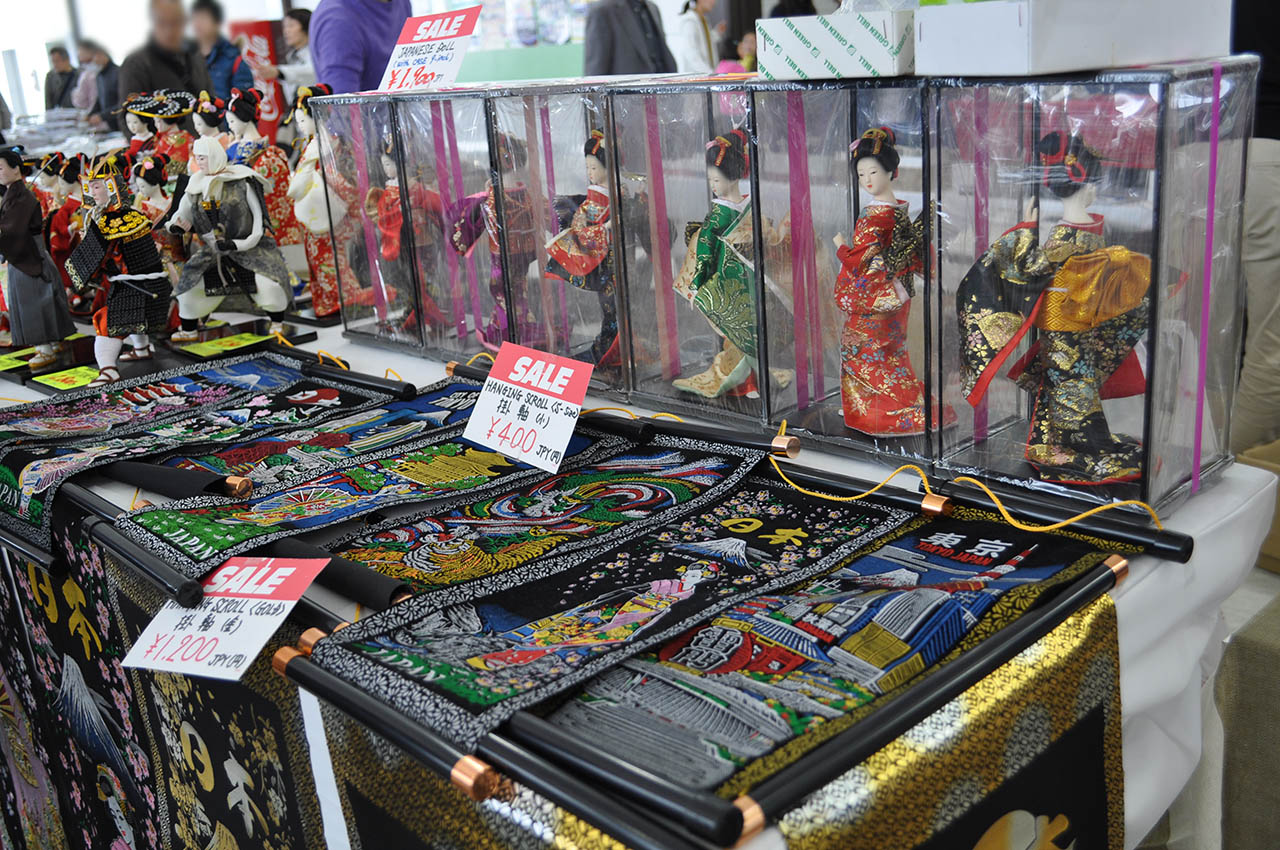 外国客船が来航するとポートターミナルの中には外国人観光客向けのお土産物屋さんが立ち並ぶ。これが面白い。NIPPONを惜しげもなく全面に押し出した商品がズラリと並ぶ。昭和の観光地の空気感が漂う。日本刀型の傘とか垂涎もの。翌日持ってたご近所さんがいてちょっと羨ましかった。。。