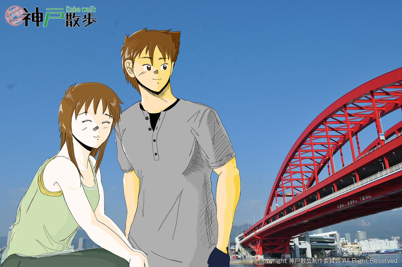 神戸大橋と綺麗な青空の写真が撮れたので爽やかなイメージで描いたイラストです。