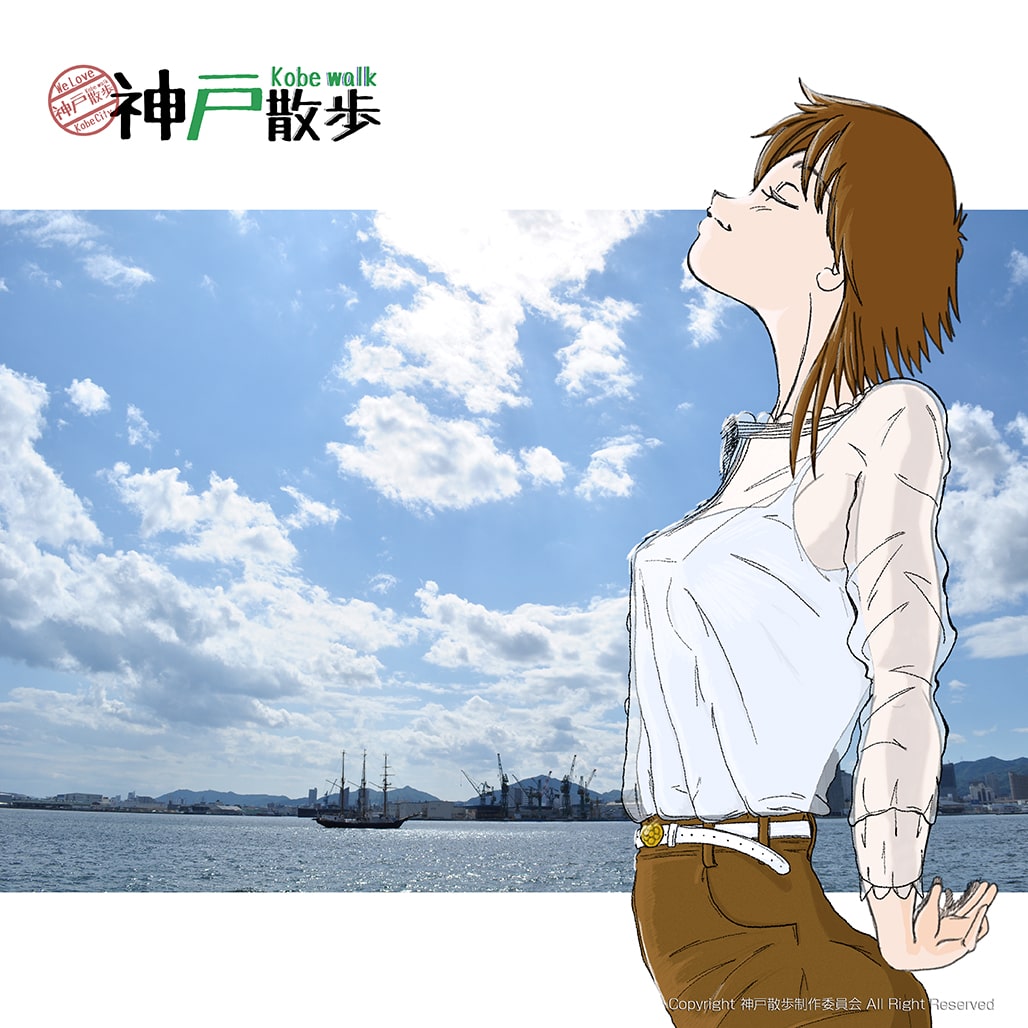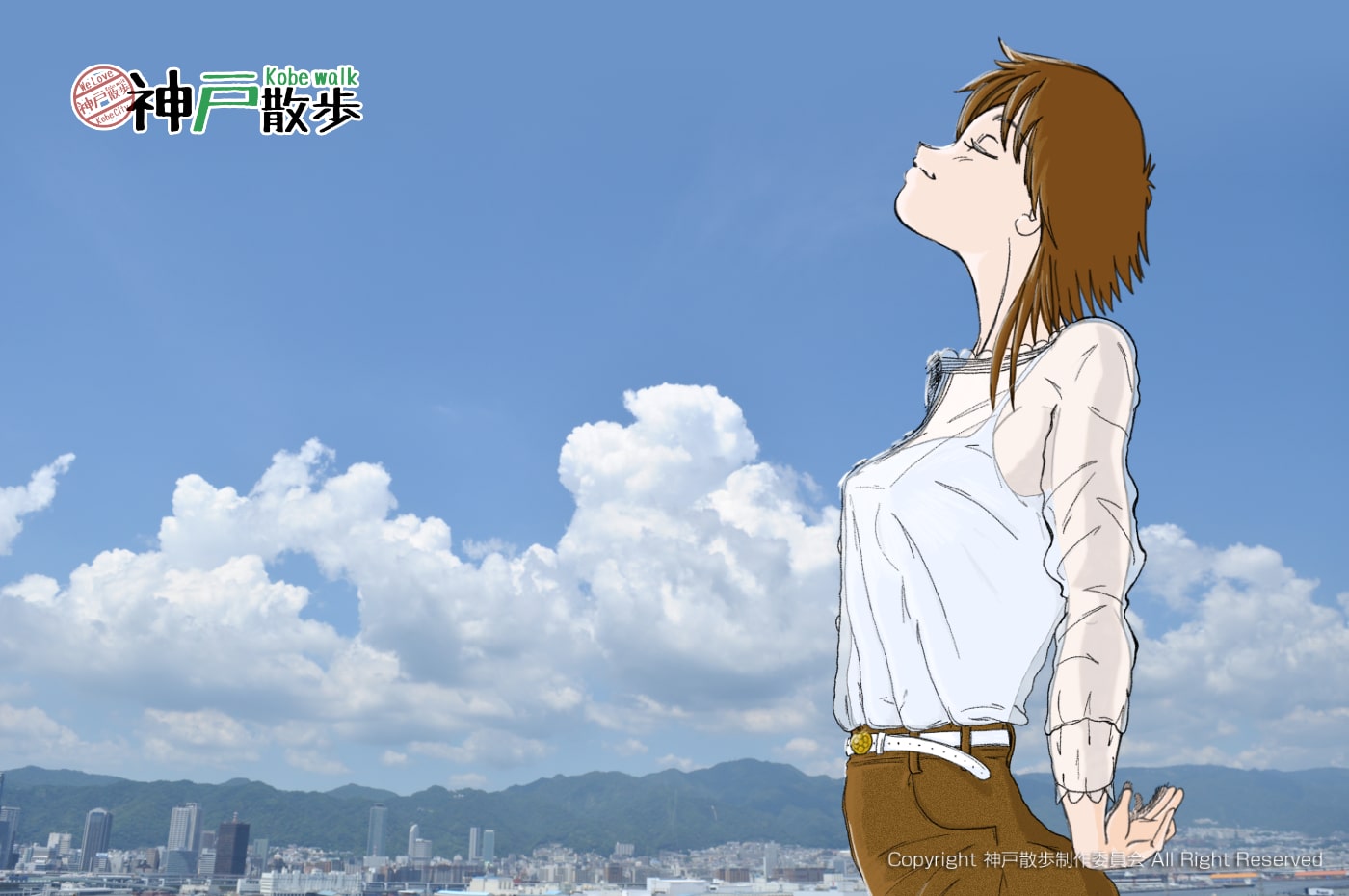 広々と開けた神戸の街並みを見渡して空を仰ぐ響子さん