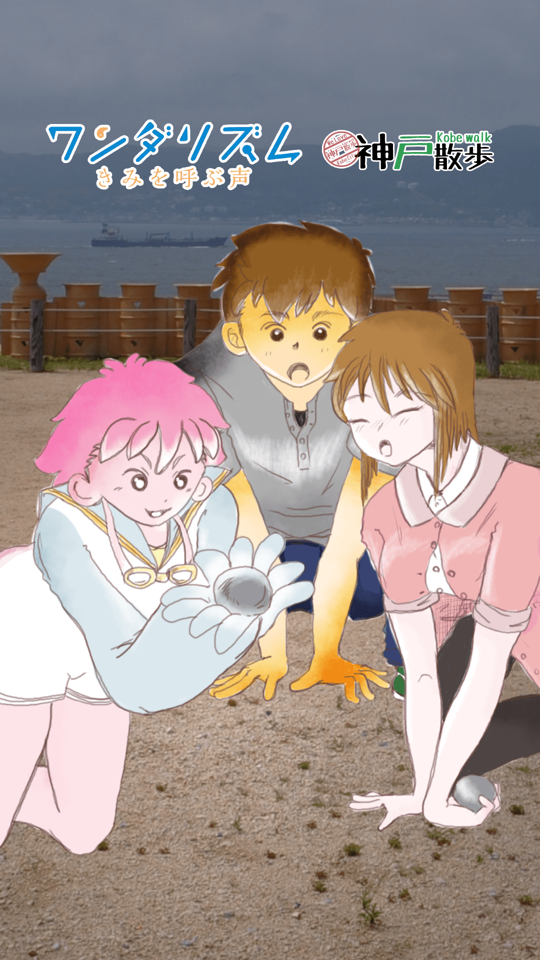 なつしまと邂逅するふたり。なつしまの持つ不思議な石をみせてもらいます。