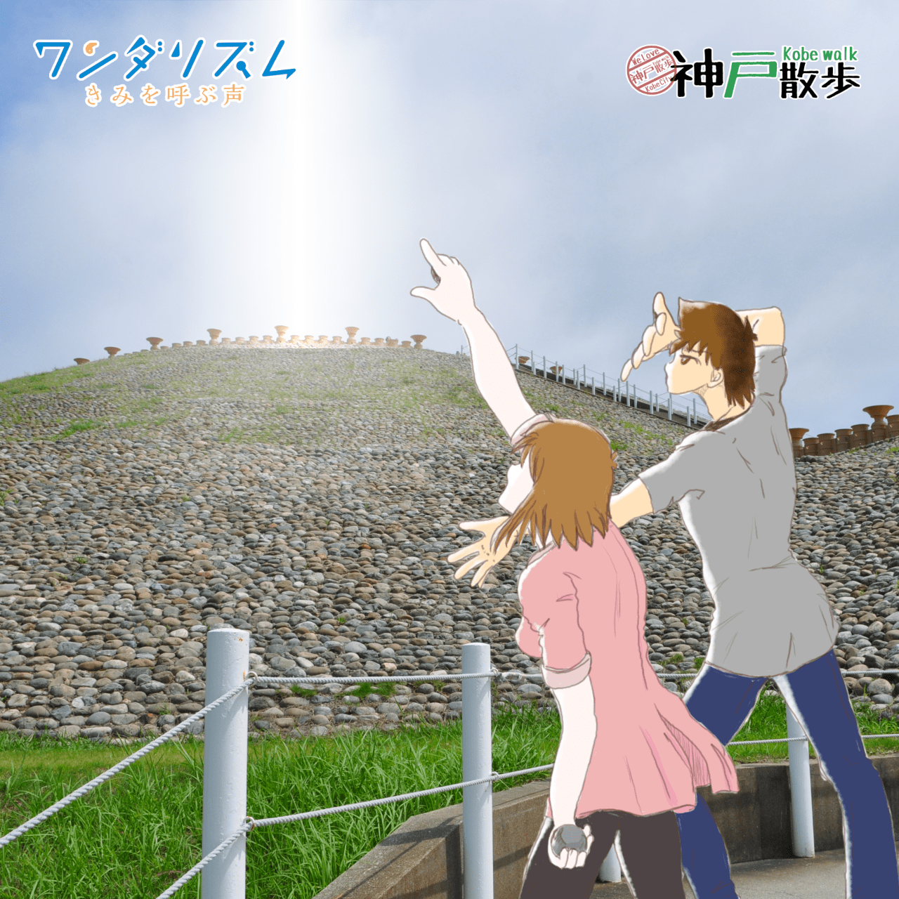 円墳の中心はパワースポットという噂のある五色塚古墳。五色塚古墳のこの場所に立つといつも何か起こらないかという妄想を形にしました。