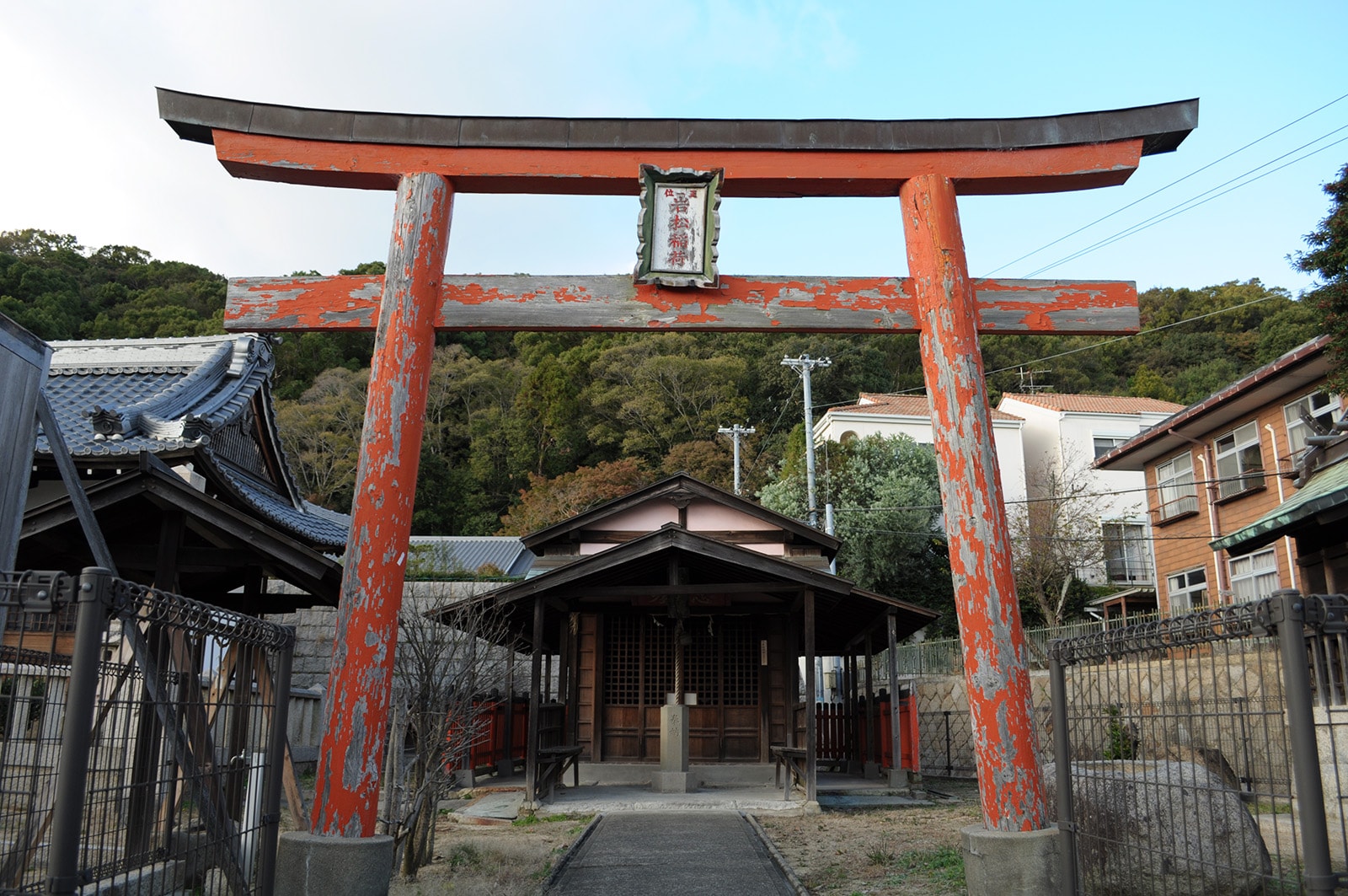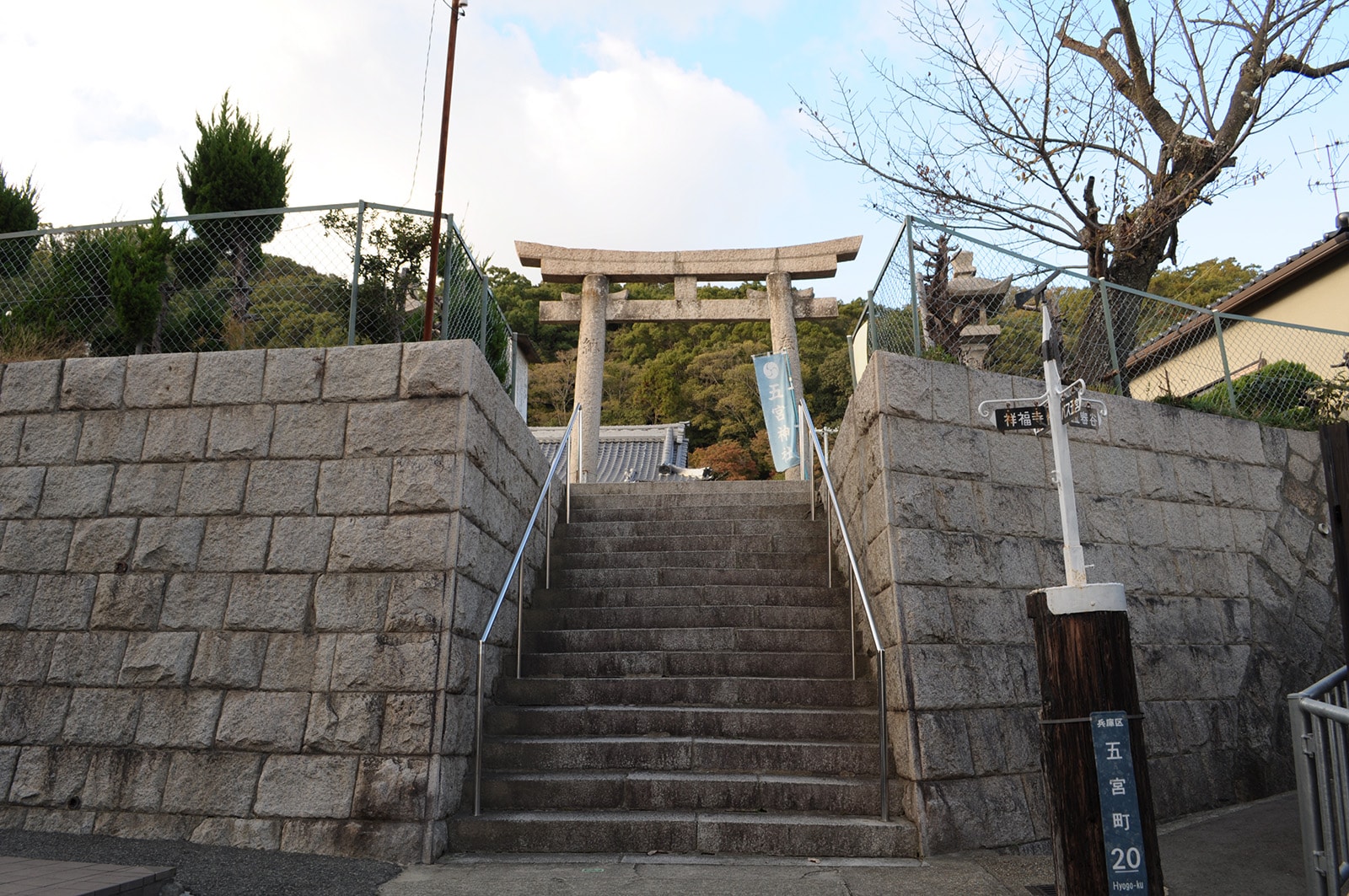 山の斜面に位置していて小路を縫うように坂道登りきると五宮神社の鳥居が見えてきます。