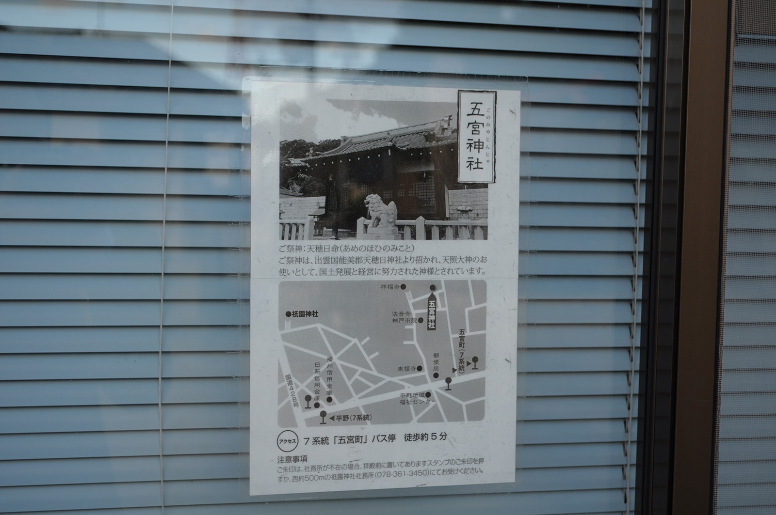 JR三ノ宮駅そごう前、JR神戸駅前、市営地下鉄湊川公園駅より 神戸市バス7系統「五宮町」バス停 徒歩約5分