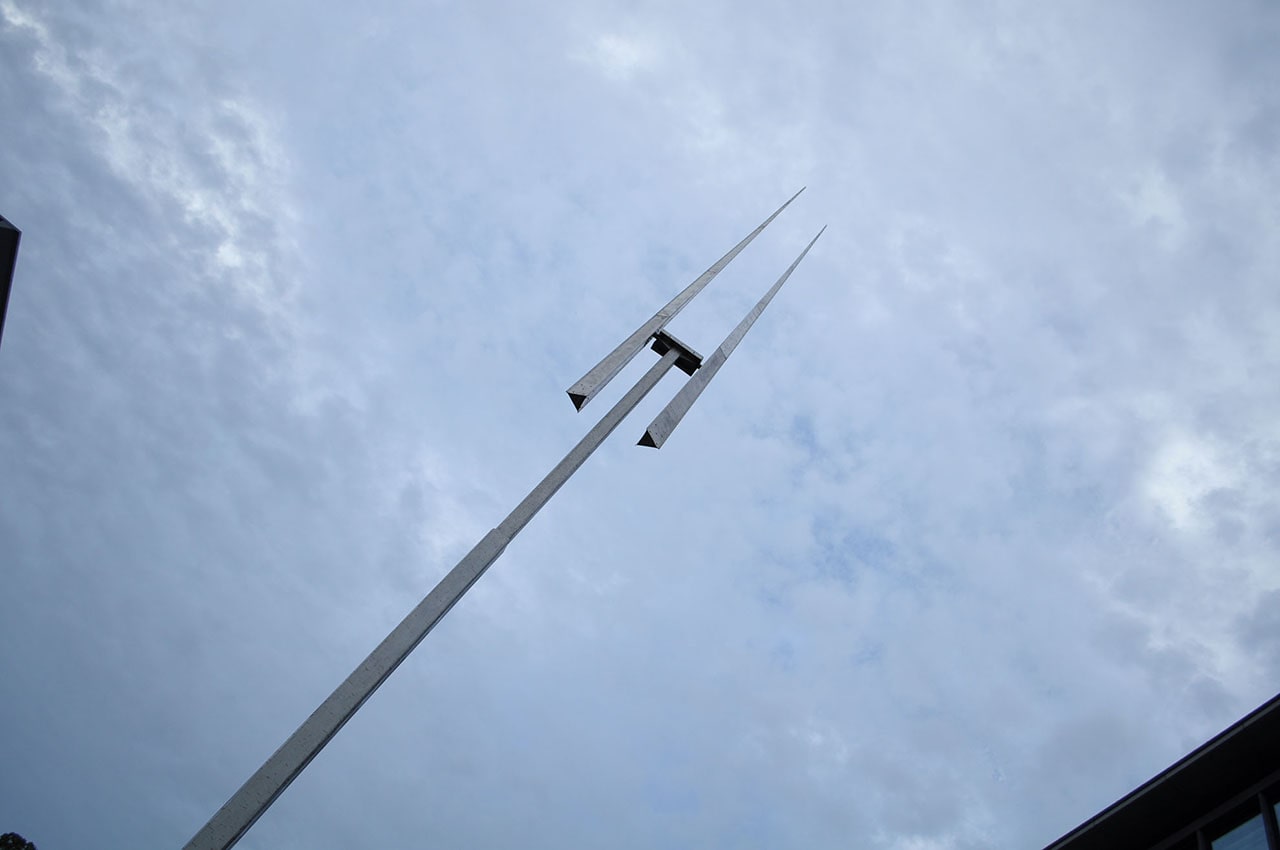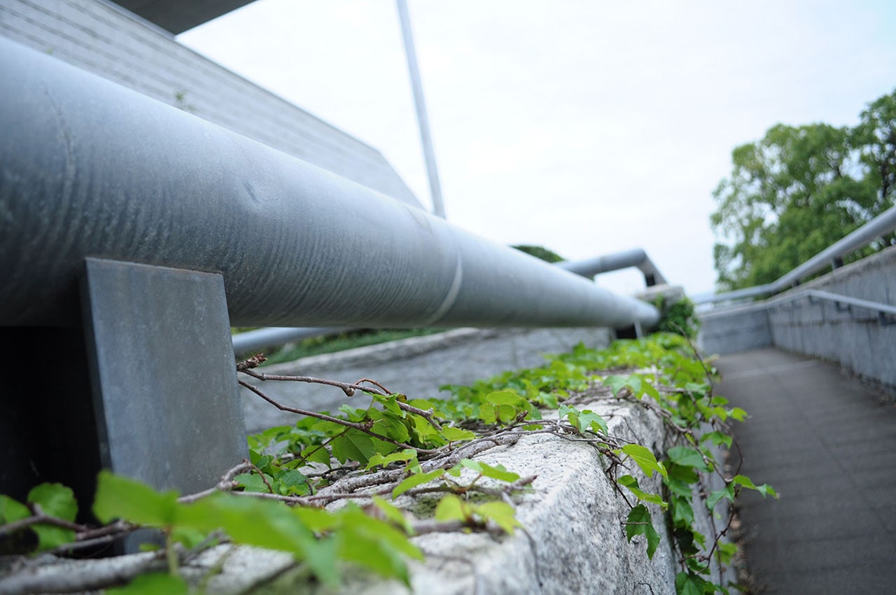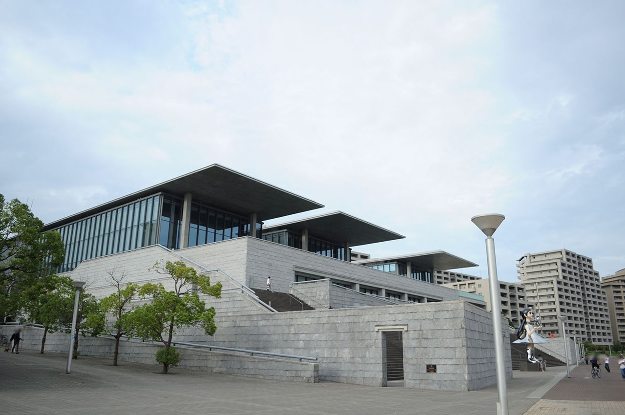 安藤忠雄さんデザインの兵庫県立美術館。複雑に入り組んだ造りでありながら整然とした美しさも感じます。何か巨大なものが佇んでいるのが見えてきました。