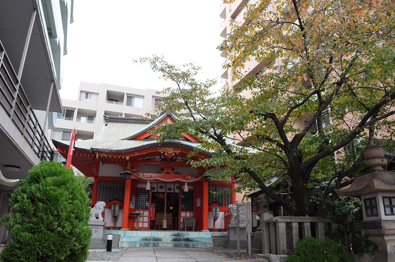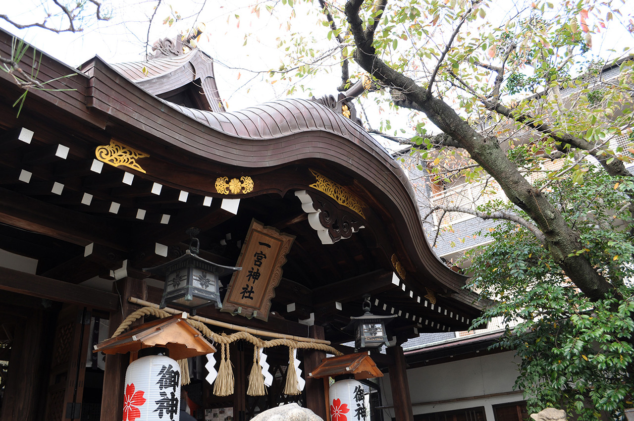 生田神社を出て、山側に上がると大きな道路(国道2号線)に行き当たります。道路を横断して東のフラワーロードに向かって歩いたところに一宮神社があります。道路から更に山側の奥まったところにあって見つけにくい場所です。密集した建物間に鎮座していました。