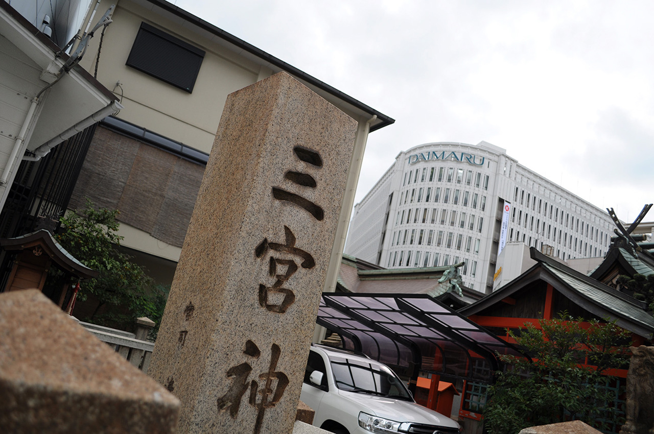 三宮の地名の由来でもある三宮神社。小さな神社ですが神戸のシンボル的存在の大丸神戸店の真ん前に鎮座していていて独特の存在感を醸し出しています。
