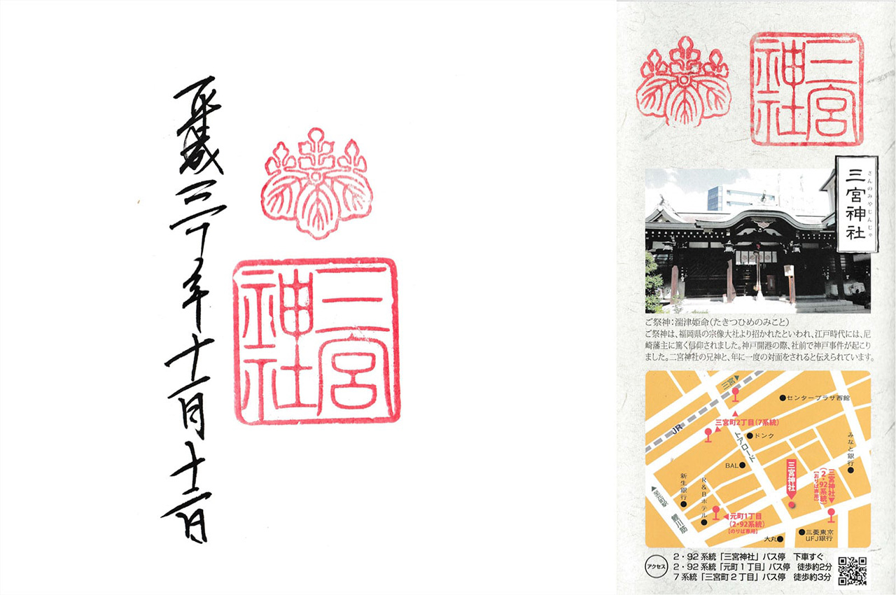 神戸の最も大きな繁華街である「三宮」の地名は、この八社の一つ「三宮神社」が由来なのです。繁華街のど真ん中、大丸百貨店の前に「三宮神社」があり、三宮駅前から少し東に行くと二宮という地名になります。そこにはもちろん「二宮神社」があるのです。