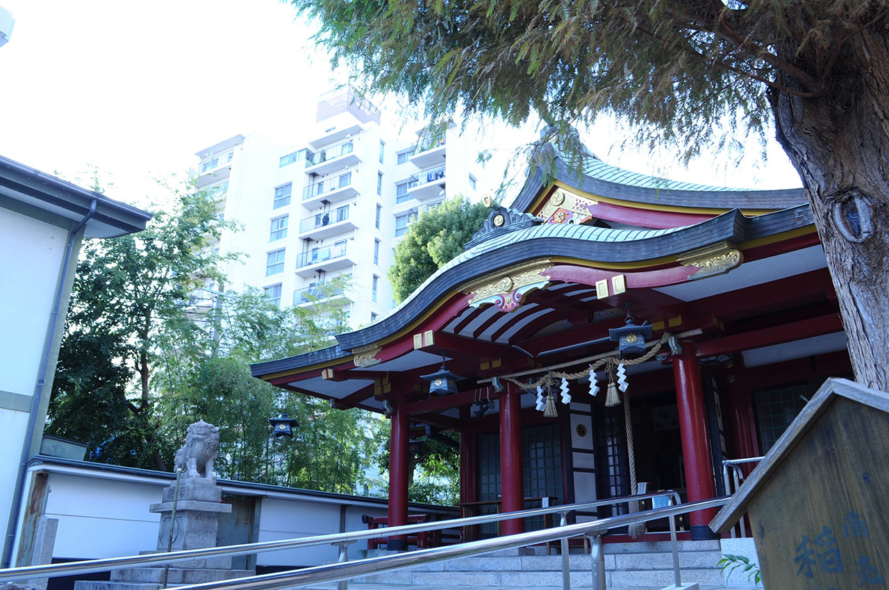 鳥居を進むとまずは稲荷神社の境内が現れます。御由緒は掲題の横に掲示されていました。伏見稲荷大社の神様を祀った神社で、戦争が始まるまでは二宮神社の周辺は花街だったのですね。福原といい二宮といい、神戸は花街が栄えた土地柄のようです。