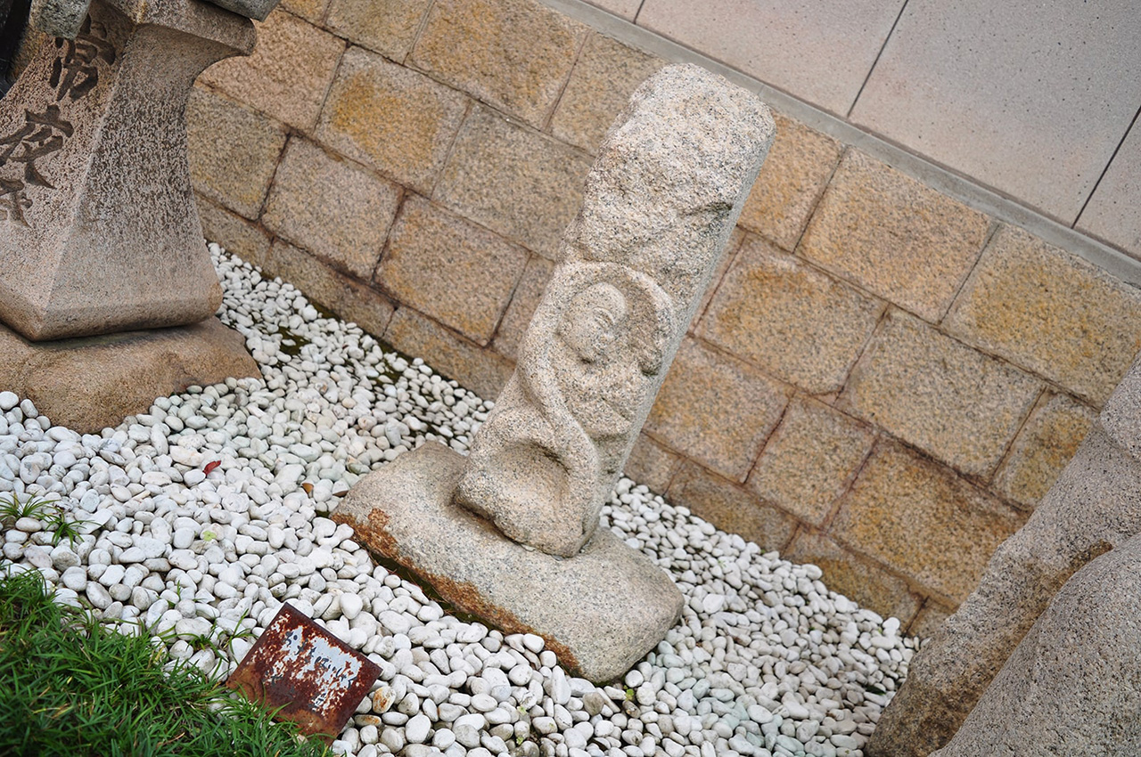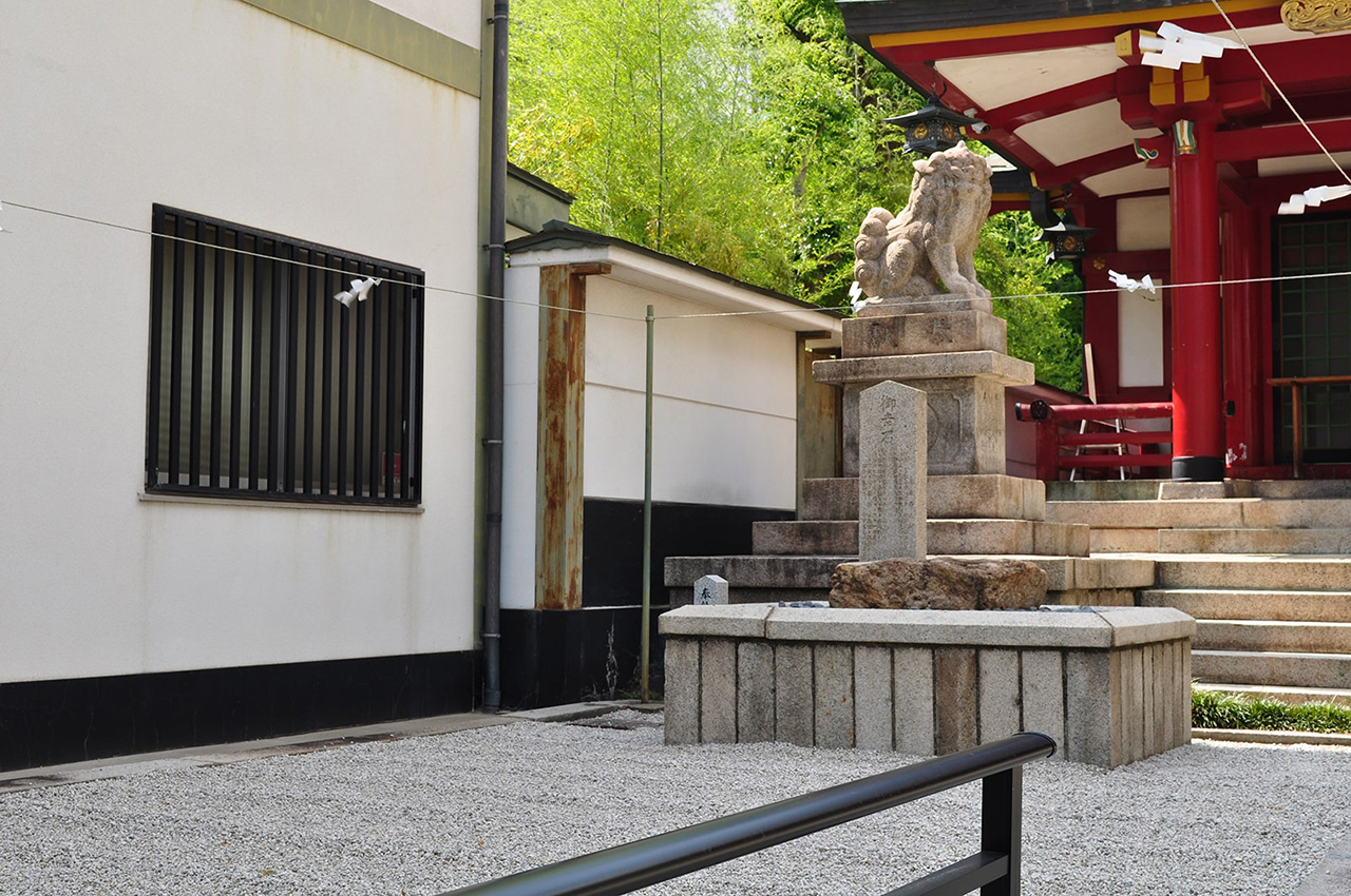 稲荷神社と椋白龍社のある通路にひっそりと座すおイネ狐。この石像に祈れば良縁と子宝に恵まれ、おなかをさすると安産祈願になるそうです。おなかがポッコリと膨らんでいますね。おイネ狐は二宮を含む葺合地域周辺の創作民話の一つだそうです。物語の詳細は「おイネ狐の話」(外部へのリンク)からご覧いただけます。