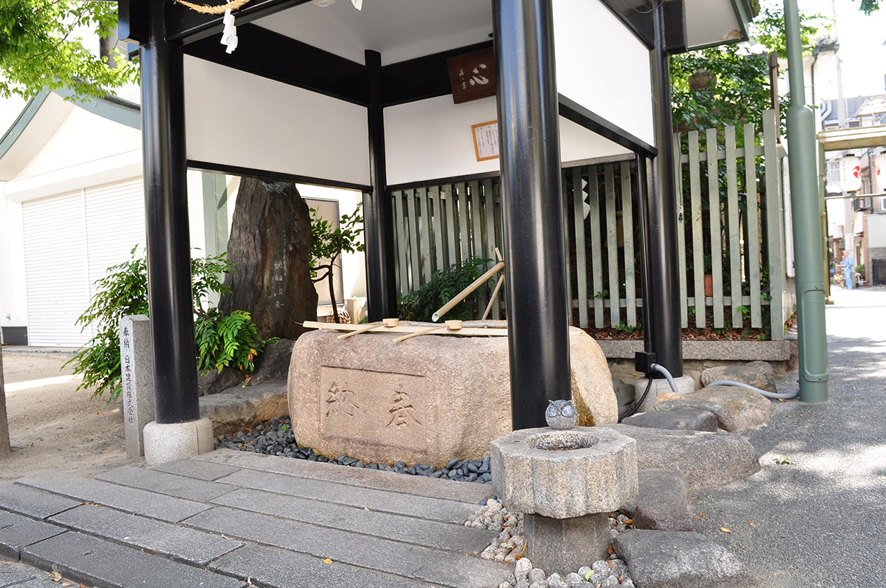 百度石のそばにある石碑と手水舎。石碑の和歌港神戸守護神の御歌だそうです。