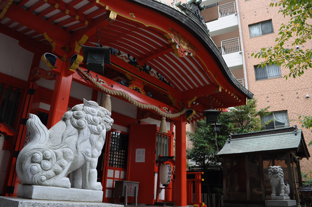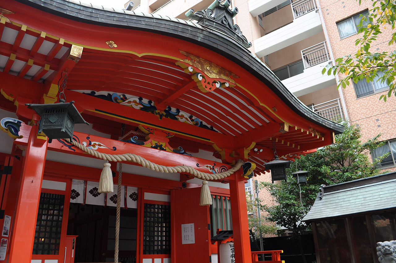 高いビルの隙間に挟まれてどんな神社かと思ったけど、すごく落ち着いた雰囲気の素敵な神社でした。芸事の神様だけあって、いただいた御朱印もイラスト入りで素敵やったなぁ。