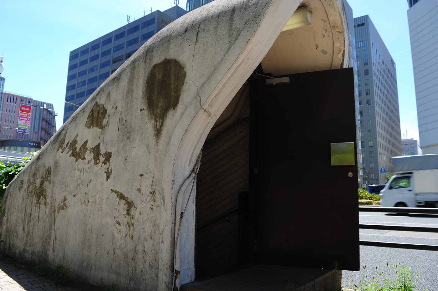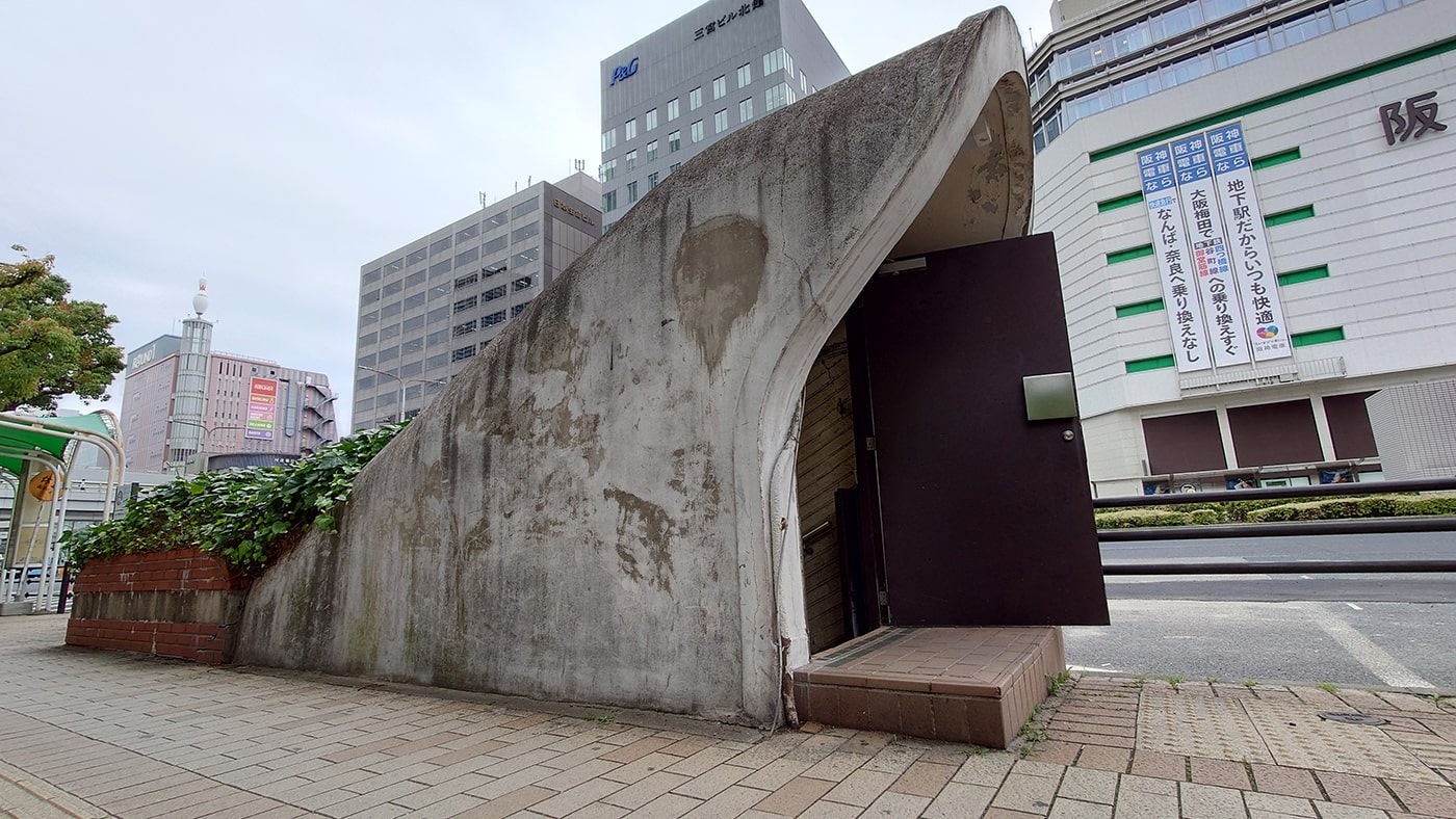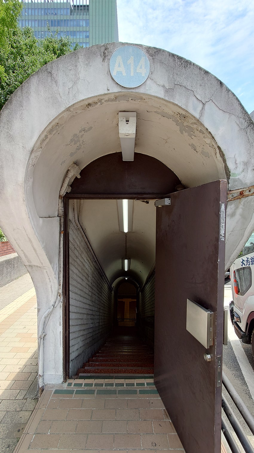 今回のお散歩は、もうすぐ取り壊されると噂の、JR三ノ宮駅の海側、駅とさんちかを地下でつないでいる地下道への出入り口の一つである「A14番出入口」、通称ガリバートンネルに行ってきました。