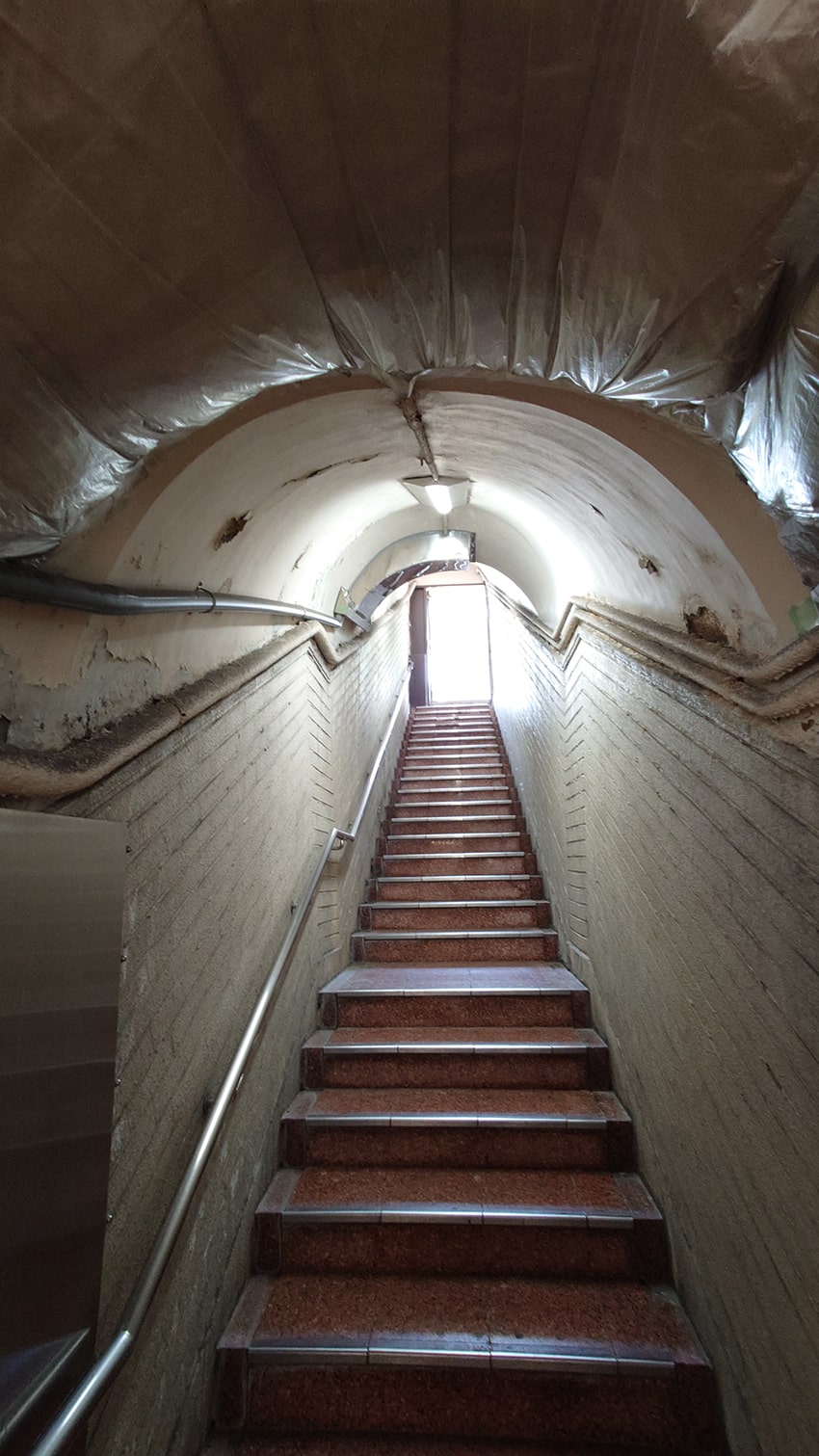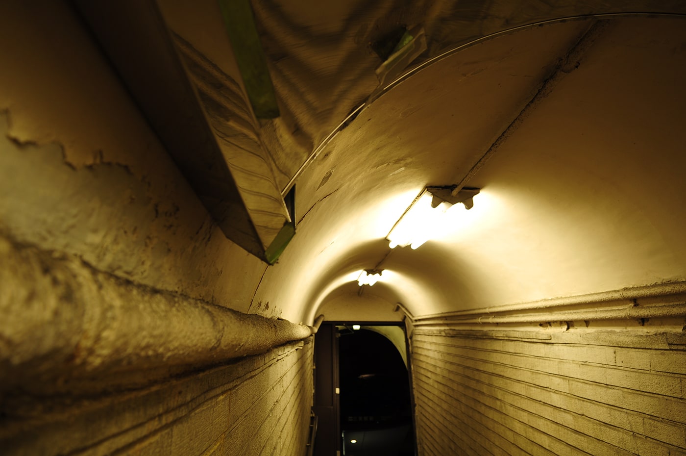 狭い通路、薄暗い電灯の光の具合、古びた壁や錆びれたダクト、崩れ剥がれた壁の一部、長い時間の経過によって形作られた独特の雰囲気を持ち、なんとも言えないワクワク感があります。
