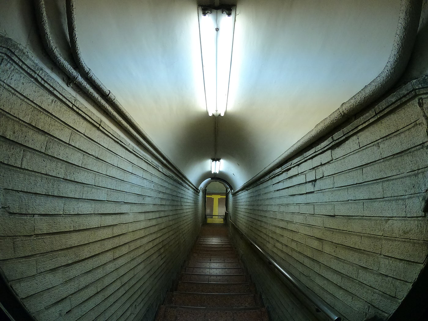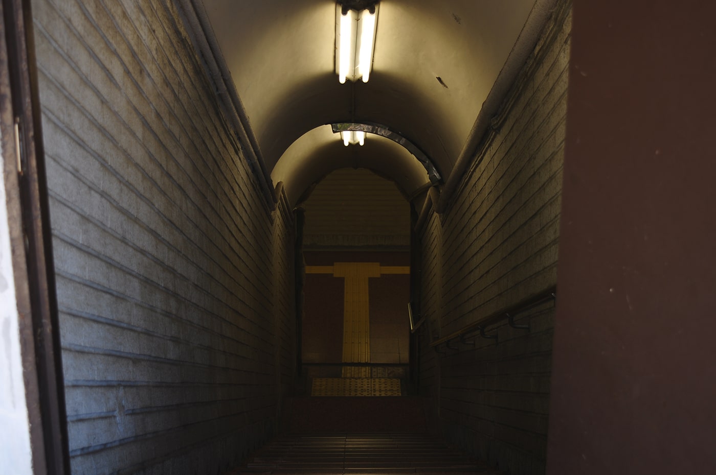 阪急百貨店には向かわずに、上の写真の階段を降ります。階段を降りるとポツンとガリバートンネルが口を開けて待っています。地味で古い佇まいのせいもあり、目立たないですね。
