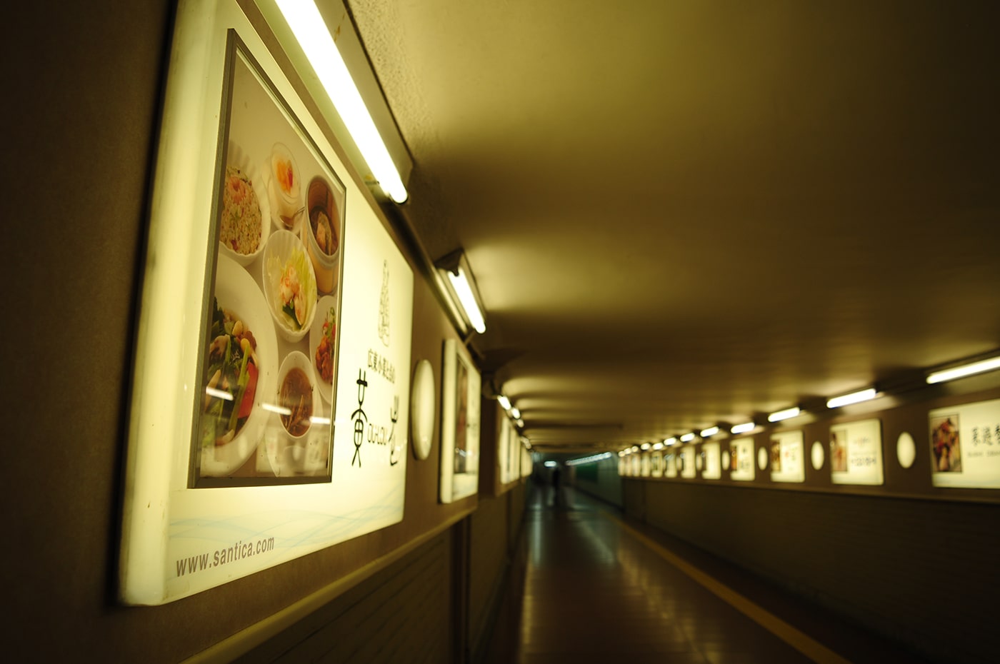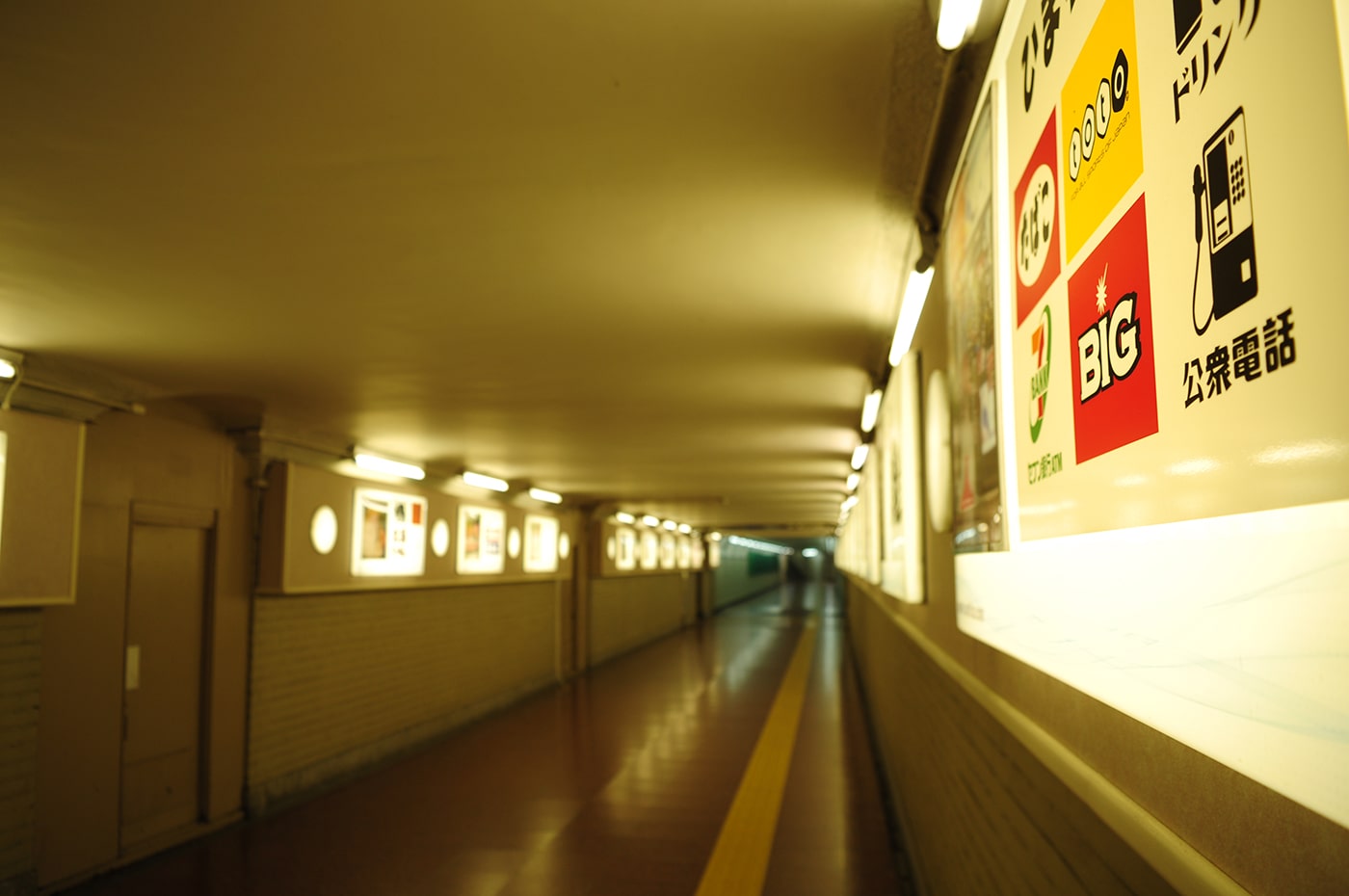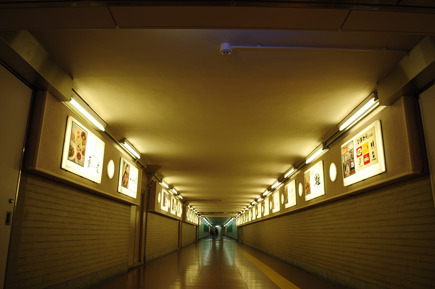 夜のガリバートンネルは昼間とは雰囲気がガラッと変わります。地下迷宮の様相が増し、妄想も増しましで捗ります。意外と周りが暗いので、トンネルの中も外も、蛍光灯の明かりがとても良い雰囲気を醸しだしています。