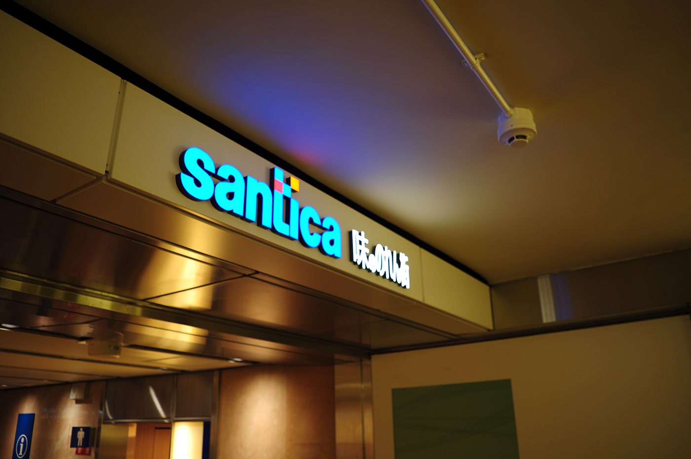 階段を降りると一本道になっている地下通路の中間地点くらいに到着します。JR三ノ宮駅から阪神電車方面につながる通路です。このあたりは「さんちか」と呼ばれ親しまれている三宮地下街が広がっています。飲食店がたくさんある「味ののれん街」や、阪急百貨店のデパ地下に繋がっています。