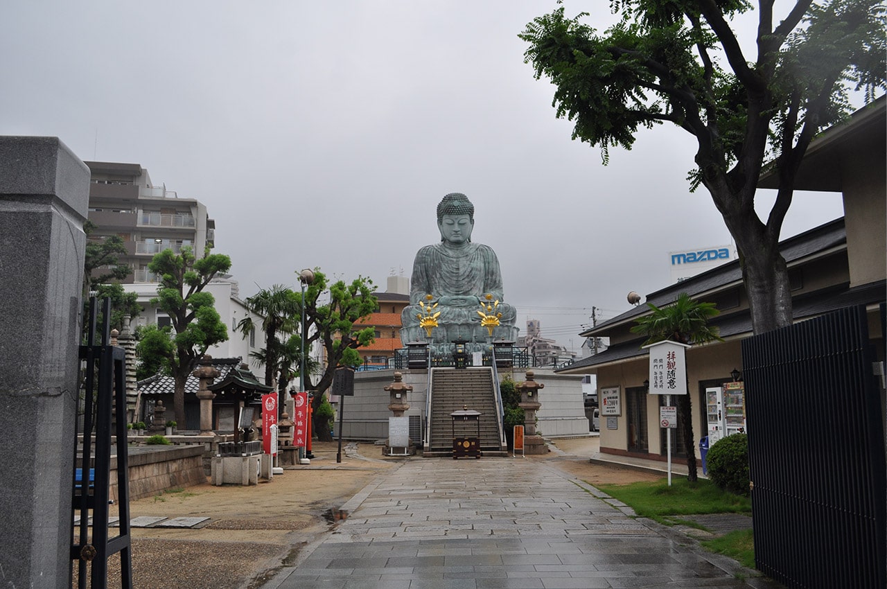 大きな大仏様といえば、奈良か鎌倉の大仏が有名ですが、神戸にも兵庫区の能福寺に巨大な大仏様があるんです。兵庫区もかなり南側で観光の匂いもあまりしない街中に大きな大仏様の姿が現れます。巨大で荘厳な大仏様なのですが知名度はとても低い気がします。