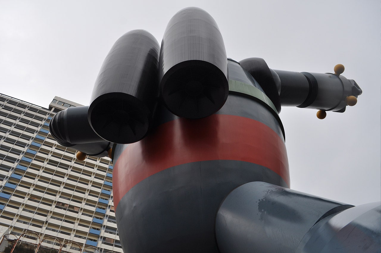 KOBE鉄人プロジェクトにより、2009年(平成21年)9月29日に完成した鉄人28号の等身大モニュメント。着工時からその巨大さと男のロマンを駆り立てるプロジェクトで、大きな話題になりました。高さ15.3メートル(直立なら18メートルにもなる)という巨大さで、新長田駅前に君臨するその姿は、まさにマンガの一コマを切り取ったみたです。