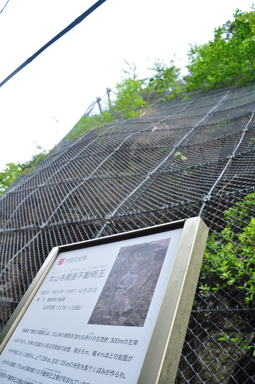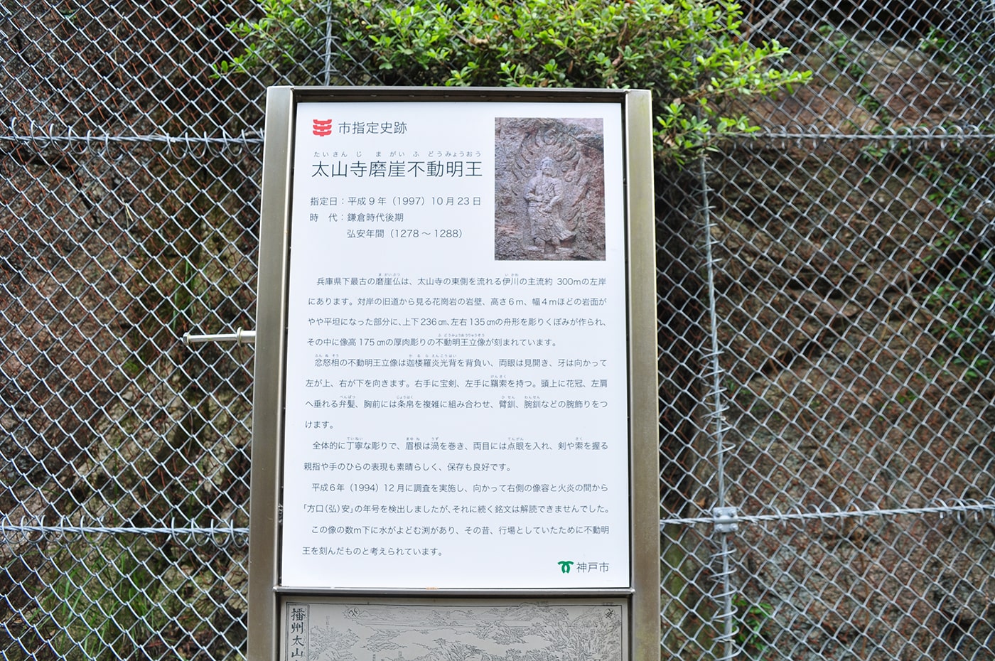 今回のお散歩は、太山寺の近くにある磨崖不動明王を訪ねました。神戸でもなかなかのマニアックスポットではないでしょうか。1997年に市指定史跡となった崖に掘り込まれた兵庫県下最古の磨崖仏。川を挟んで向かい側の崖にあるので距離は結構あるのですが、かなりくっきりとお姿を確認できました。