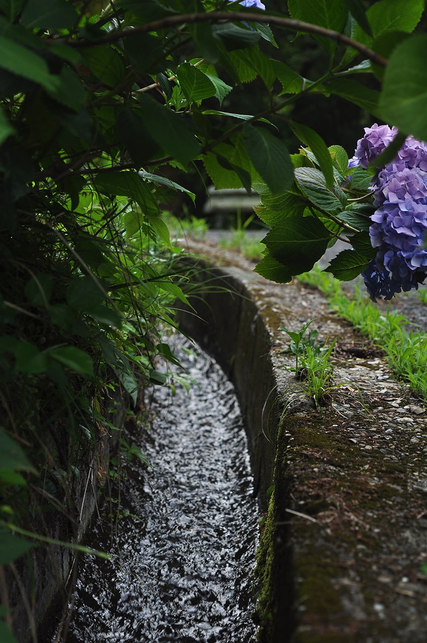 道は舗装されているので歩きやすいのですが、山の中の静寂と清々しい早朝の空気に包まれて、とても気持ちのよい道のりです。道中は紫陽花がキレイに色づいていて、目も楽しみながら歩を進めます。