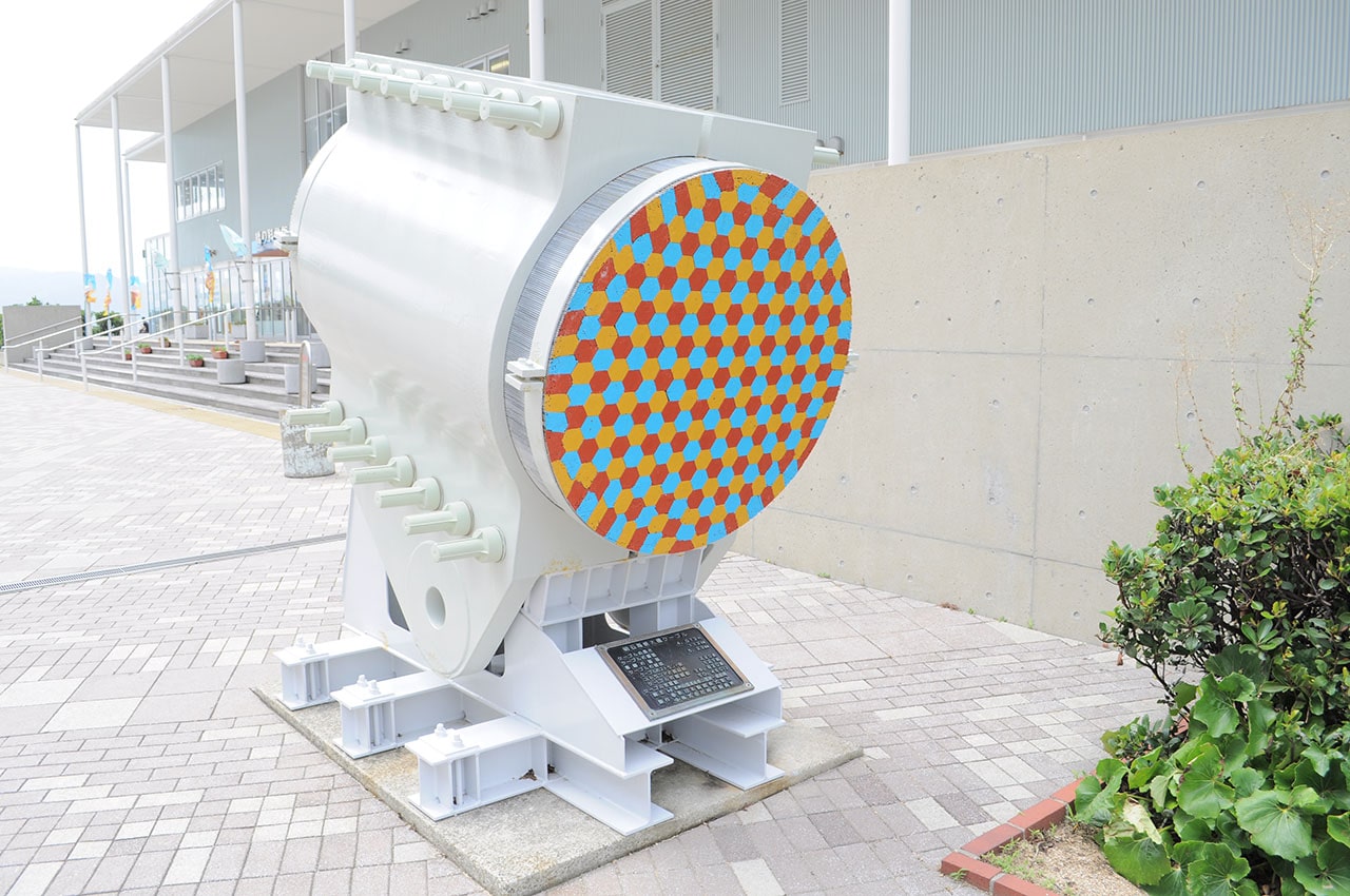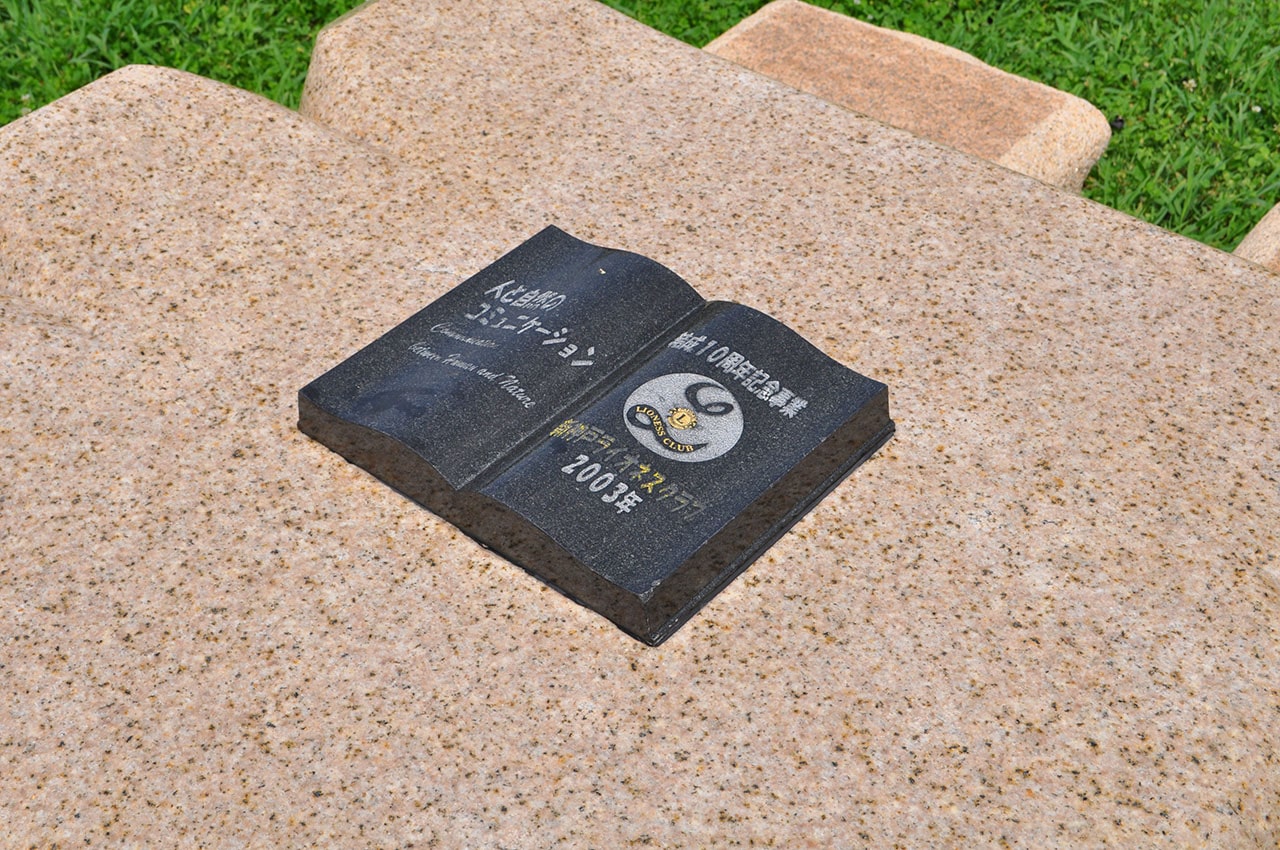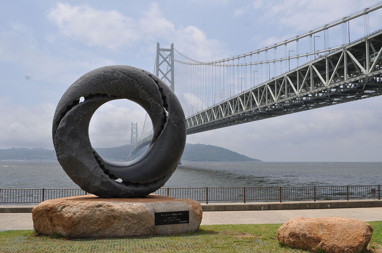 三種の異なった石肌によるメビウスの輪は人、自然、科学を、そして明石海峡大橋が結んだ本州と淡路・四国を表しています。この三つの相が調和し、円空から未来への発展を展望しています。