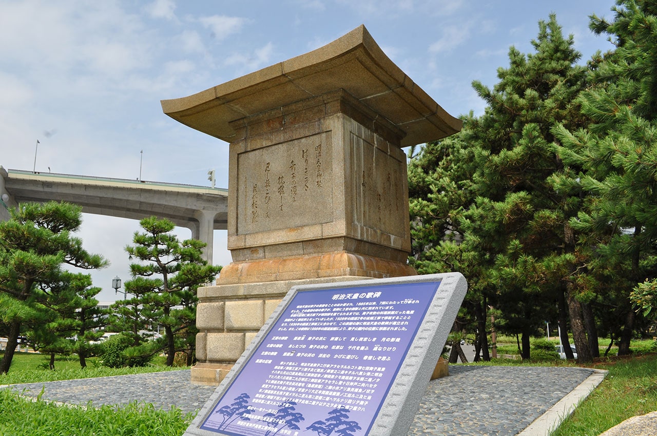 さらに進むと「明治天皇の歌碑」が威風堂々とした佇まいで建っています。明治天皇の最初の行幸の様子が3種の御製(ぎょせい)とともに歌が刻まれています。初めて「御製」という言葉を知りました。天子がつくった詩歌のことだそうです。勉強になります。