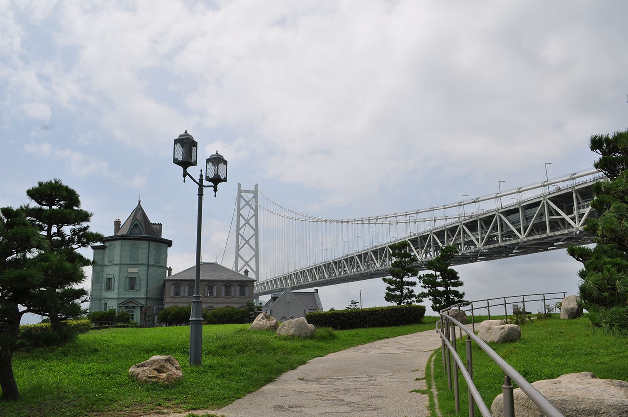 明治天皇が7回も行幸されたという舞子浜。舞子公園は舞子駅のすぐ南に位置し、穏やかに波がゆらめく明石海峡と、整然とした美しさで立ち並ぶ松林の中に、文化財住宅などが溶け込んだステキな公園です。勇壮な明石海峡大橋を目の前で大迫力の距離で堪能できます。休みの日でも人が少ないのんびりしたお散歩スポットです。