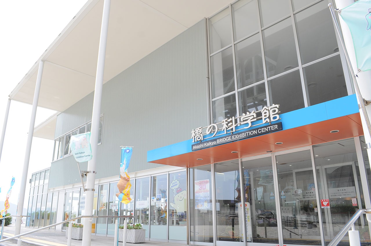 橋を通り抜けてすぐのところに「橋の科学館」なる建物がありました。明石海峡大橋の全てが分かる(らしい)サイエンスミュージアムです。明石海峡大橋のゆるキャラ「わたるくん」が窓から手を振ってます。