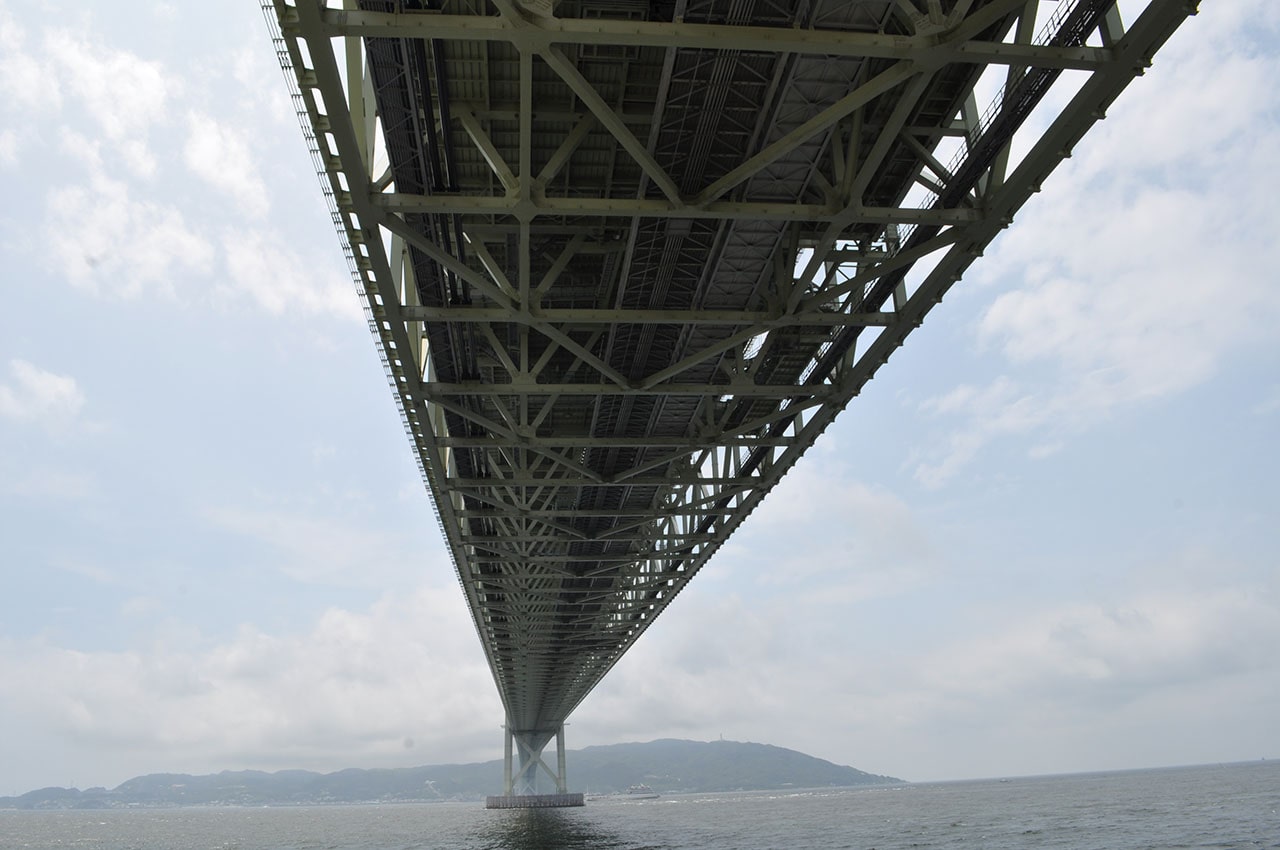 明石海峡大橋は舞子公園の真上を通っているので、真下から間近に大迫力な姿を見ることができます。